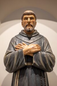 A thirteenth-century Italian merchant's son who heard Christ call him to "rebuild my Church," gave away everything he…